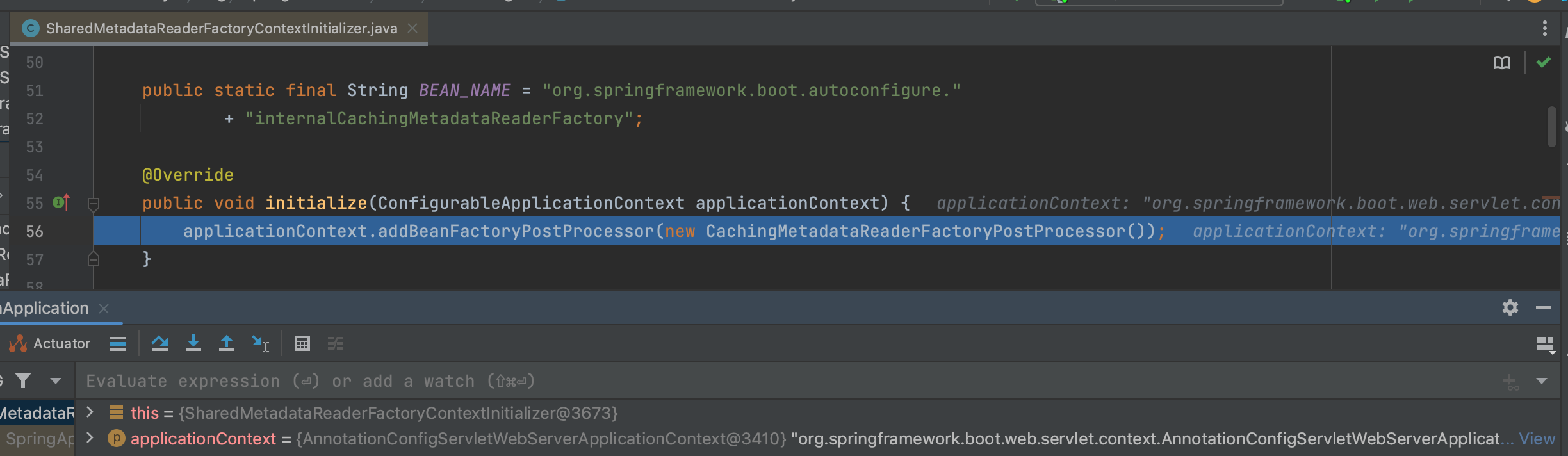 同时在这个过程中有SharedMetadataReaderFactoryContextInitializer添加到了ApplicationContext 中进行管理, 当后续执行其initialize时会