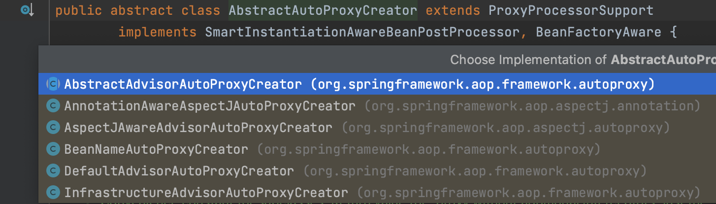 AspectJAwareAdvisorAutoProxyCreator是 AbstractAdvisorAutoProxyCreator 的子类,主要用于处理基于 AspectJ 方式的 AOP 配置。