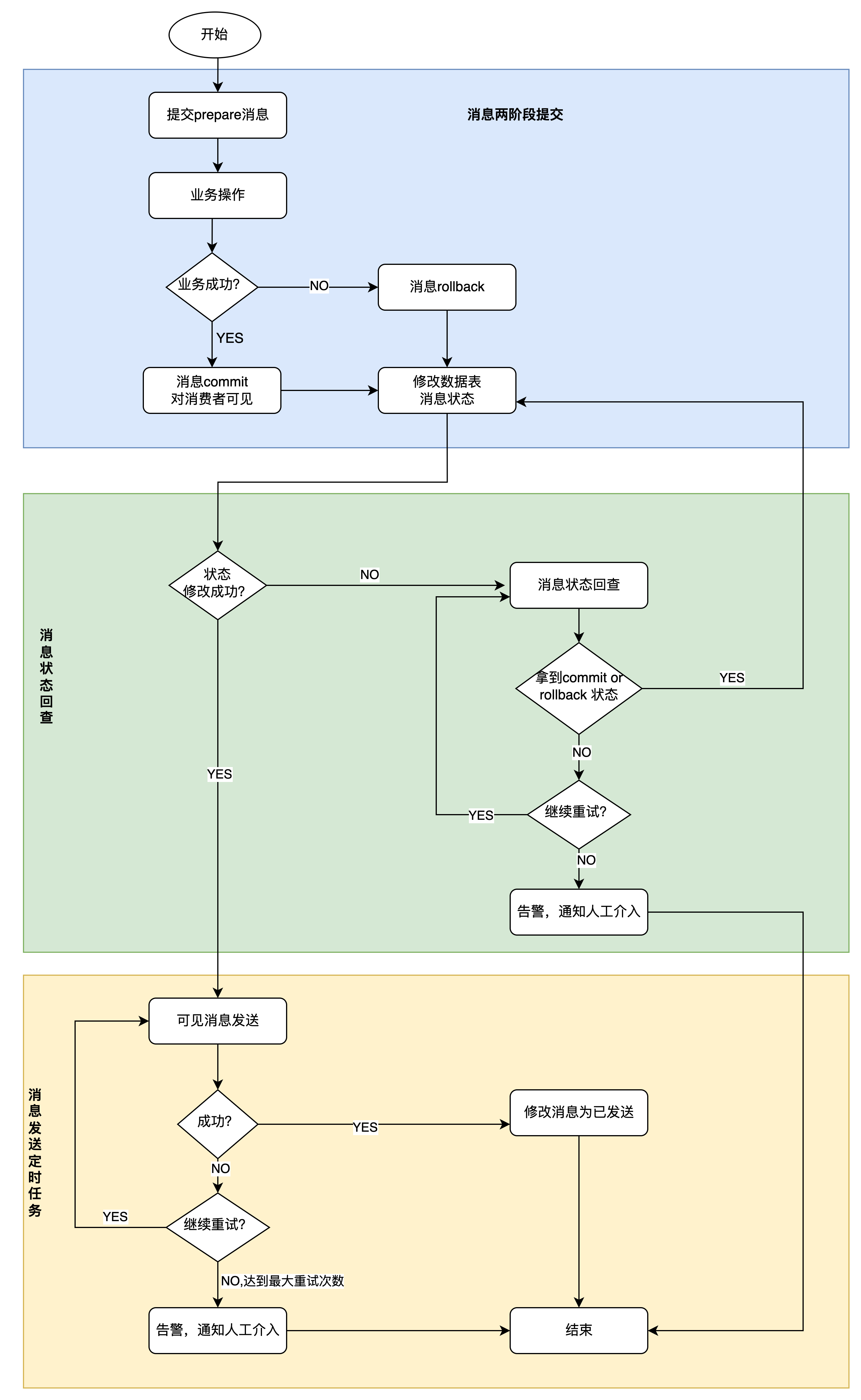 在本项目中,消息回查指的就是开启一个定时任务去全表扫描,找出insert一定时间后,其状态仍然是 prepare的消息 ,通过业务逻辑判断该条消息是否已经执行完成 or 失败,对应地把消息状态更改为 commit or rollback。