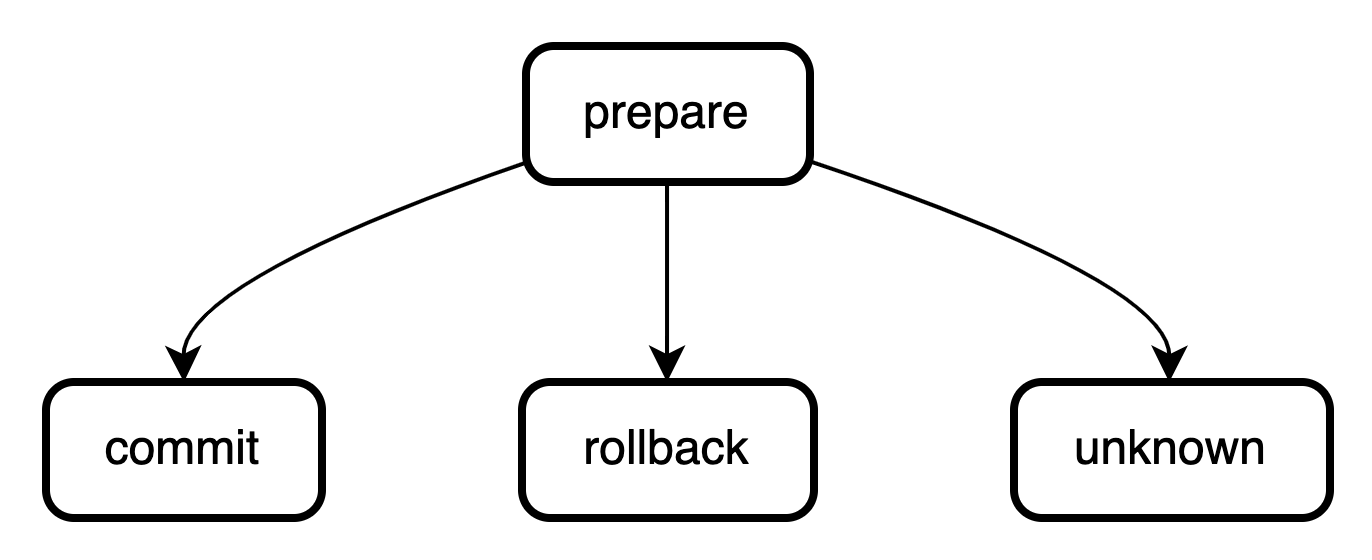 消息类型包括 prepare、commit、rollback
