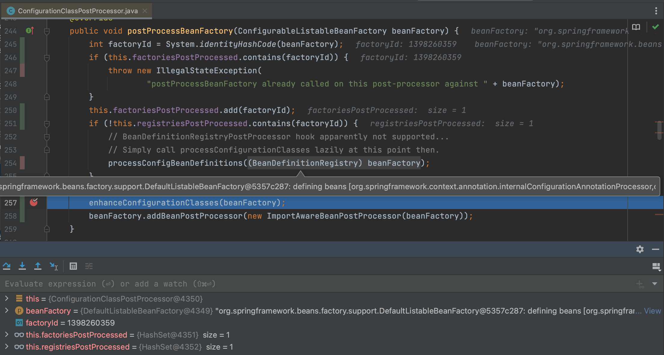 ConfigurableBeanFactory beanFactory = getBeanFactory(enhancedConfigInstance);