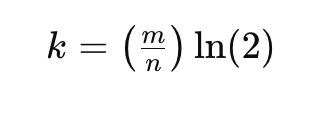 实际实现时,可能还需要对计算结果进行取整处理,并确保结果是一个正整数。此外,实现可能还会考虑到性能和存储效率的平衡,比如通过限制位数组的长度为2的幂等。