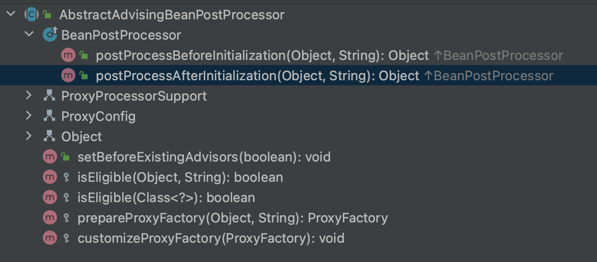 1 | public abstract class AbstractAdvisingBeanPostProcessor extends ProxyProcessorSupport implements BeanPostProcessor { |
