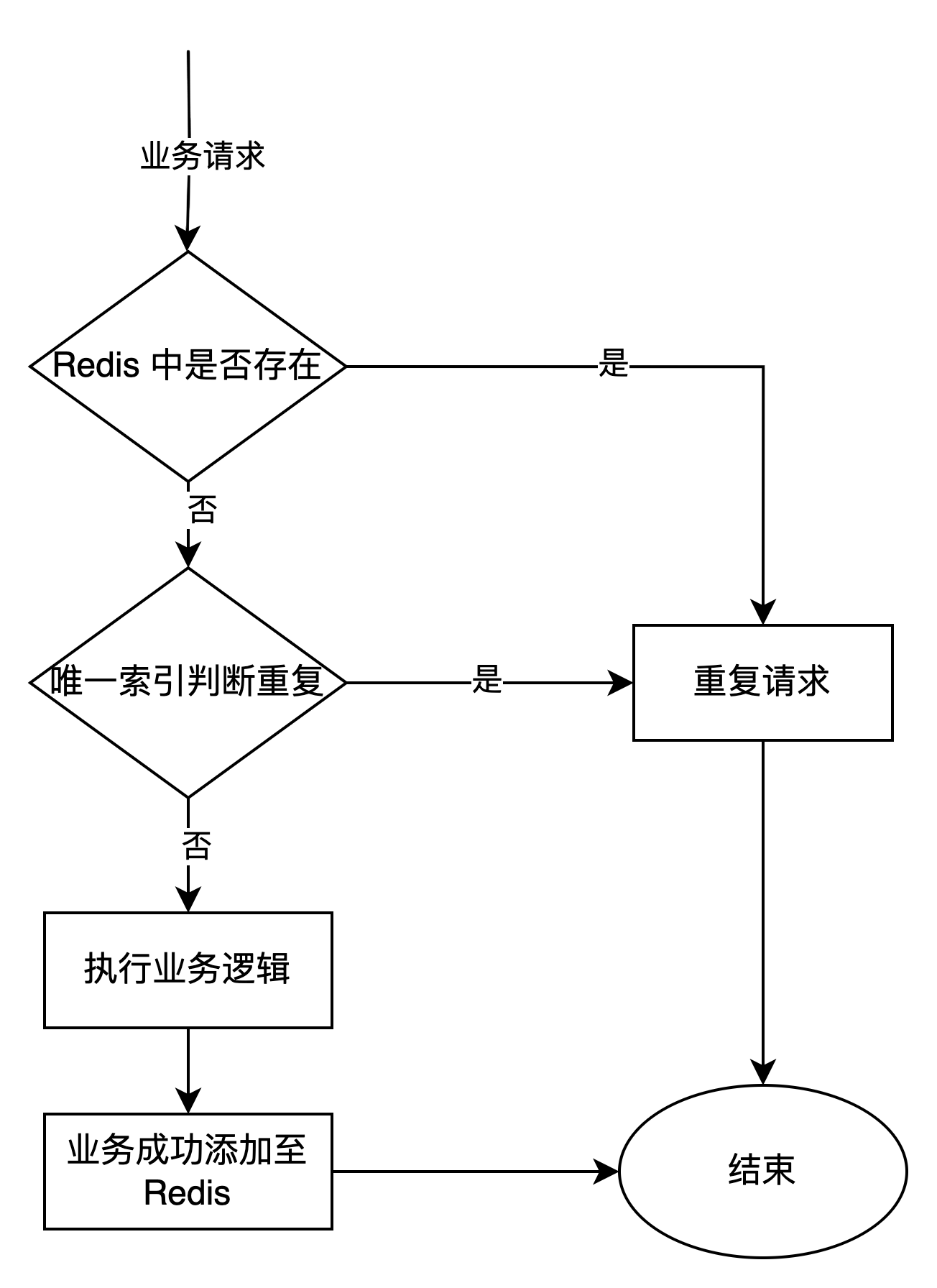 如果短时间重复请求非常多,可以使用 Redis 存储已处理过的请求来拦截短时间内的重复请求,以有效减少数据库层面的重复请求判断,避免数据库频繁执行唯一索引检查,从而提升系统性能。